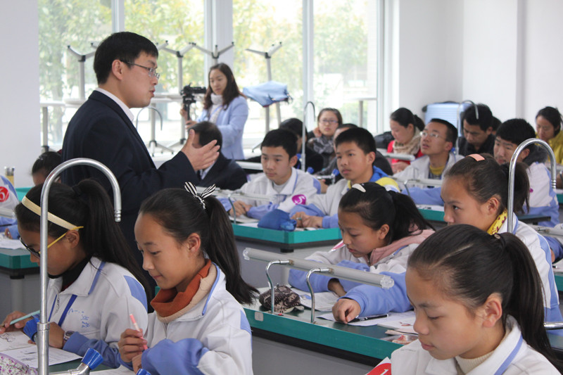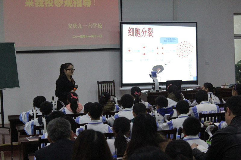 2014年11月11-12日 ,安徽省初中生物优质课大赛在我校隆重举行,经过层层选拔来自全省17个地市共25位选手参加了此次大赛。省初中生物优质课大赛是全省中学生物教师教学交流和展示的平台,各地市生物教师对该项赛事均非常重视。在安庆市教研室上半年组织的预赛中,来自全市的十多位生物教师参加了角逐,最终选定我校姚辉老师作为安庆市代表参加全省的比赛。赛前,我校生物教研组在教学设计、实验操作、教学语言、教态等方面对姚辉老师进行了精心地指导。面对实力强劲的选手,我校姚辉老师凭着深厚的基本功和娴熟的课堂驾驭能力,赢得了各评委和人教社专家的一致肯定。