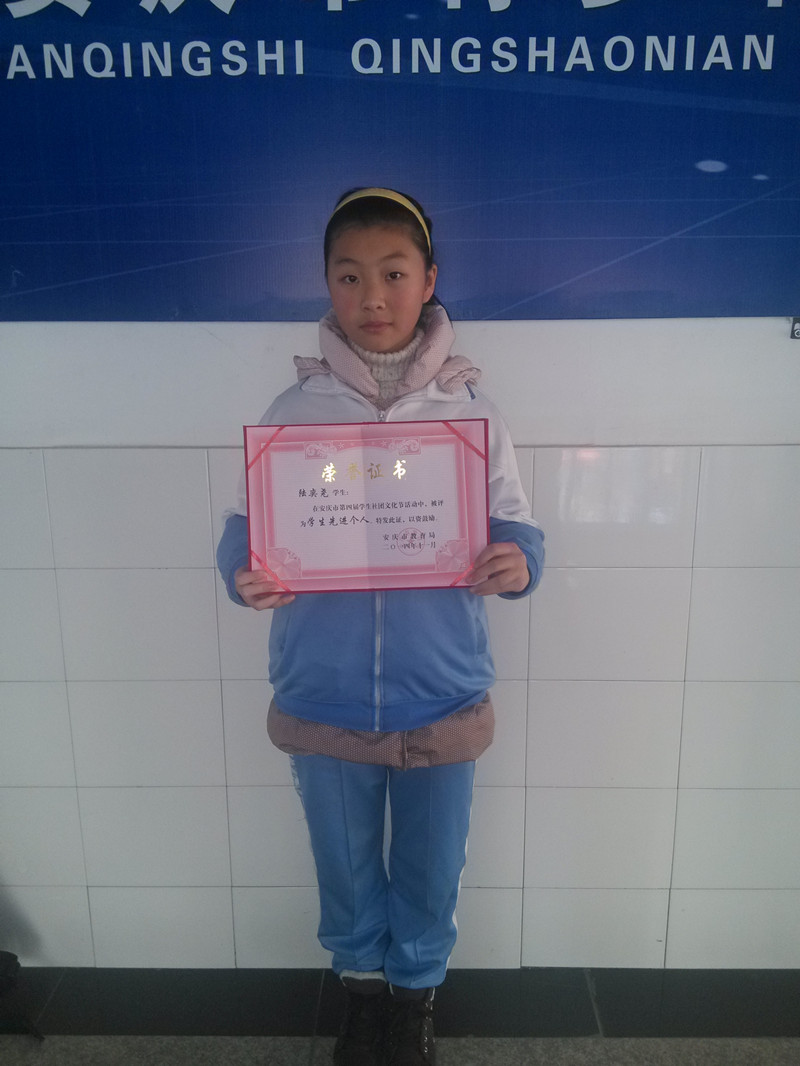 12月5日,我校陆奕尧,荣谢天同学分别代表“九一六人”文学社和九一六模联社参加了由市教育局举办的安庆市第四届中学生社团文化艺术节活动,此次活动中我校文学社荣获安庆市“明星社团”称号,模联社荣获安庆市“优秀社团”称号,并且陆奕尧同学还荣获教育局颁发的“学生先进个人”奖,在此对获奖社团和个人表示热烈祝贺。