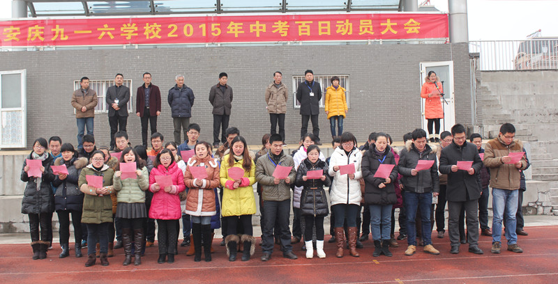 3月6日下午,我校在田径场上隆重举行2015年中考百日动员大会。大会由校长助理余茂斌主持,副校长李一雄、程启胜以及行政干部出席了此次大会,并且整齐的站在主席台上,与初三全体师生共同见证这激动人心的时刻。