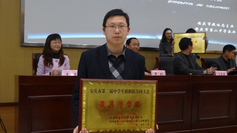 基于上述的期望,我们学校的6名高一新生于28—30日三天参加了在二中举行的安庆市第二届模拟联合国大会,高三年级的荣谢天同学还在联合国安全理事会担任主席。“开会前,我满不在乎的认为:模联吗,不就跟过家家一样,随便玩玩的吗。但当我步入会场看着那一张张严肃认真的脸和通宵准备的材料时才知道,模联是一个神圣的,不可侵犯的地方。”参会的同学第一天如此说道。