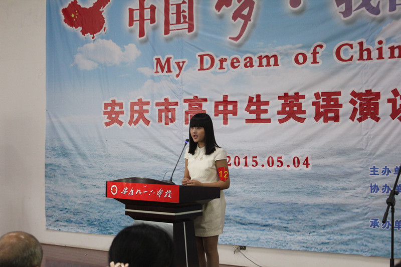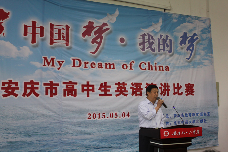 5月4日上午,由安庆市教研室主办,北京师范大学出版社、安徽大学出版社协办的安庆市高中英语演讲比赛“中国梦·我的梦”在我校成功举办。本次比赛共吸引来自安庆市城区及八县(市)49名选手参赛,安庆市教研室主任孙彦、副主任陈俊、校长周诗长出席了开幕式。周校长代表学校致欢迎辞并介绍我校发展情况。比赛中选手们的精彩演讲,充分展现了我市高中学生良好的英语语言运用能力和积极向上的精神风貌。