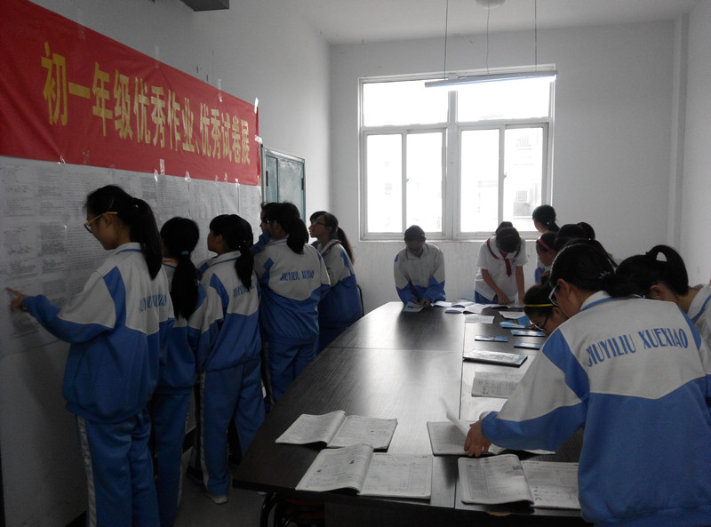 近日,初一年级开展了“优秀作业、优秀试卷展”活动。这次活动特从全年级挑选了一些优秀的答题卷和作业,向全年级同学展示。活动是以班级为单位,轮流有序地来让学生们观摩。通过身边这些同学的优秀作业和试卷的展示,全体同学都会受到激励,各个摩拳擦掌,纷纷做好笔记,书写参观心得;都积极主动向身边的楷模学习,提高作业质量,规范答题模式。