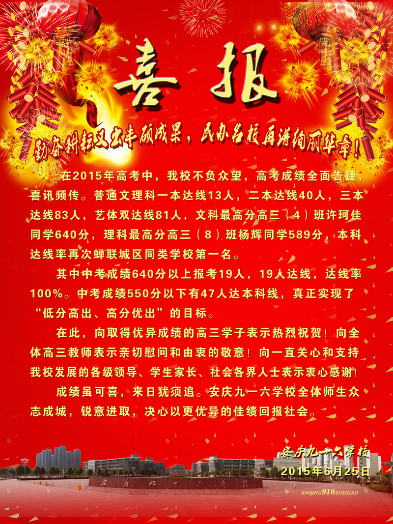 热烈祝贺我校2015年高考再创佳绩!