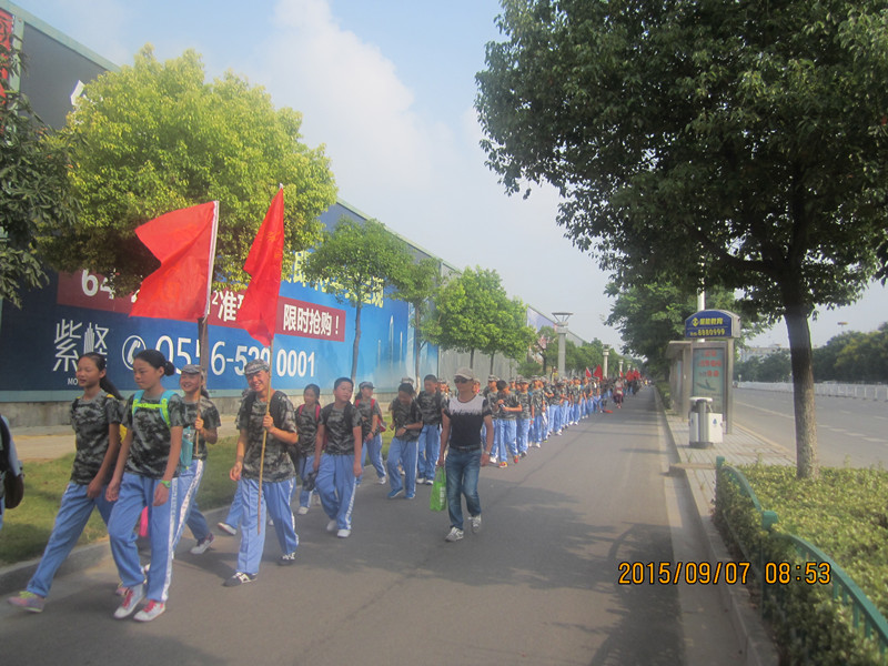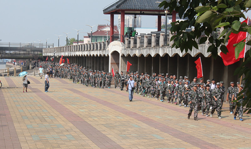 9月7日,我校2015年新生军训拉练活动顺利开展。早上,在校田径场上举行升旗仪式后,周校长向全体新生作了生动的军训拉练动员讲话。随后,我校高一全体师生由校车送到安庆一中集合,参观完一中校园、校史馆,登上一中谯楼后,沿着沿江路走向九一六学校。初一全体师生在校沿高一年级路线反向走向安庆一中。经过近2个小时的长途跋涉,两支队伍在长江滨江公园胜利会师,交换旗帜后继续前行。经过近3个小时,高一师生顺利返校,初一师生到达安庆一中参观完后,由家长接回家。
