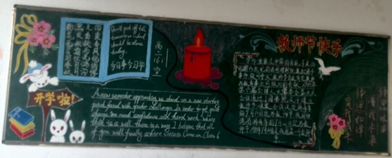 在这阳光和煦,云淡风轻的美好日子里,我们迎来了第31个教师节。为庆祝教师节的到来和加强班级文化建设,我校高二年级于9月12日举行庆祝教师节黑板报评比活动。