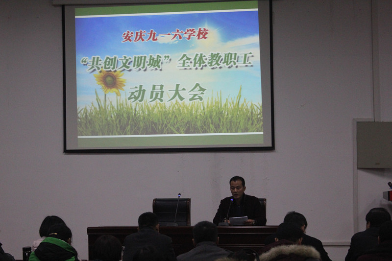 12月8日晚,我校召开了“共创文明城”动员会议。会议由副校长李一雄主持,全体教职工参加了会议。