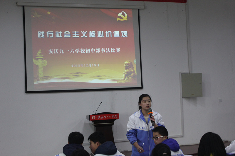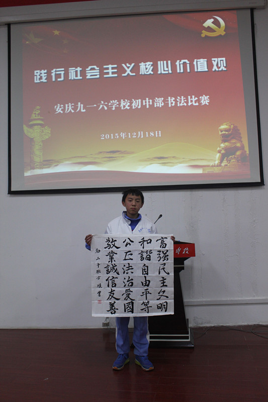 为深入贯彻落实党的十八大精神,加强未成年人思想道德建设,弘扬中华民族传统文化,提高学生的书写兴趣,使养成教育落到实处,培养学生的良好书写习惯,12月18日下午,我校举行了“社会主义核心价值观”书法比赛 。