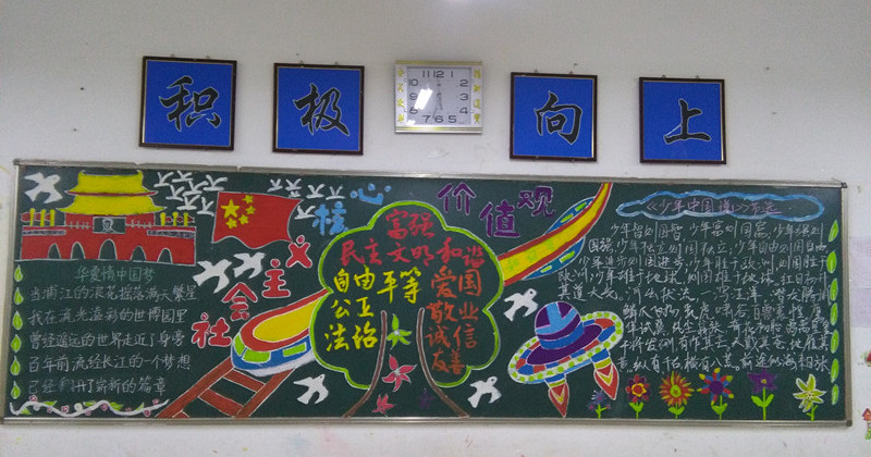 为了让师生进一步理解社会主义核心价值观的内涵,把握其精神实质,同时也为创建文明城市增加浓厚氛围,丰富校园文化建设内容,我校举行一次以弘扬社会主义核心价值观为内容的黑板报评比活动。
