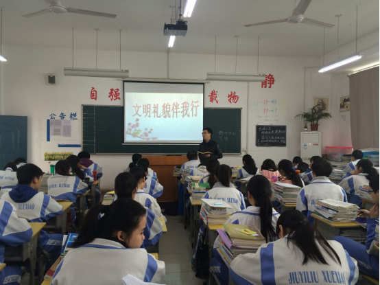 为积极响应学校提出的“平安校园,文明校园”创建口号,提高学生的文明素养和安全意识,规范学生的行为习惯,进一步提升年级组文明创建活动的效果,3月7日上午班会课,高二年级认真组织开展了“文明伴我行”教育活动。活动之前,年级进行了认真的布置,制作了统一的多媒体课件,充分利用各种图片资料进行说服教育,同时结合身边的事例让同学们谈感想。通过多种形式的交流,提高了同学们的意识,产生了积极的影响。