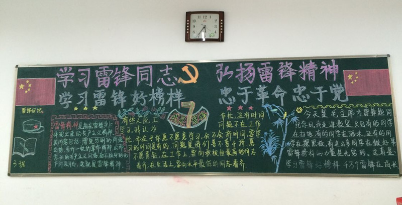 为深入开展学雷锋活动,大力弘扬雷锋精神,积极践行社会主义核心价值观,不断提升学生思想道德素质,促进学校内涵式发展,我校积极开展以“弘扬雷锋精神,构建和谐校园”为主题的黑板报评比活动。