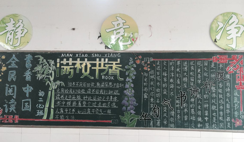 为营造浓郁的校园读书氛围,打造书香校园,培养学生良好的读书习惯,加强校园文化建设,创建和谐校园。近日,我校开展了以“倡导全民阅读,打造书香校园”为主题黑板报评比活动。