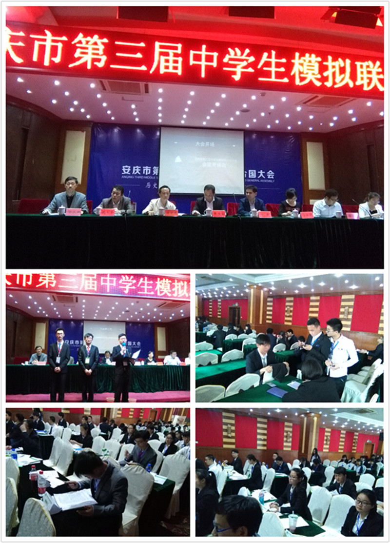4月30日—5月2日,2016年安庆市第三届中学生模拟联合国大会在宿松县安瑞大酒店举行。本次大会由安庆市教体局、共青团安庆市委员会主办,市程集中学承办的一次面向高中学生的模拟联合国会议。我校模联社共有八名同学积极参会,获得两项大奖。
