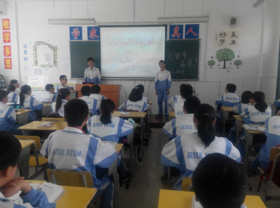 “六一”儿童节即将来临,对于初二年级的学生来说,这个儿童节是一个分水岭。我们初二的学生不再以儿童的身份去迎接这个特殊的节日,而是学会以一种崭新的角色迎接未来。因此初二年级召开了“告别童年,拥抱青春”的主题班会,这次班会旨在告诉我们初二年级学生怎样定位自己的身份角色,以及这个崭新的角色所必备的精神品质——责任。责任,既指我们要做好自己应该做的事情,又指我们要为自己已经做过的事情承担责任。责任的承担意味着我们初二的学生即将成为独立而成熟的群体,我们要为自己的新角色而感到高兴,更应该努力做好这个新角色,拥抱灿烂的青春。