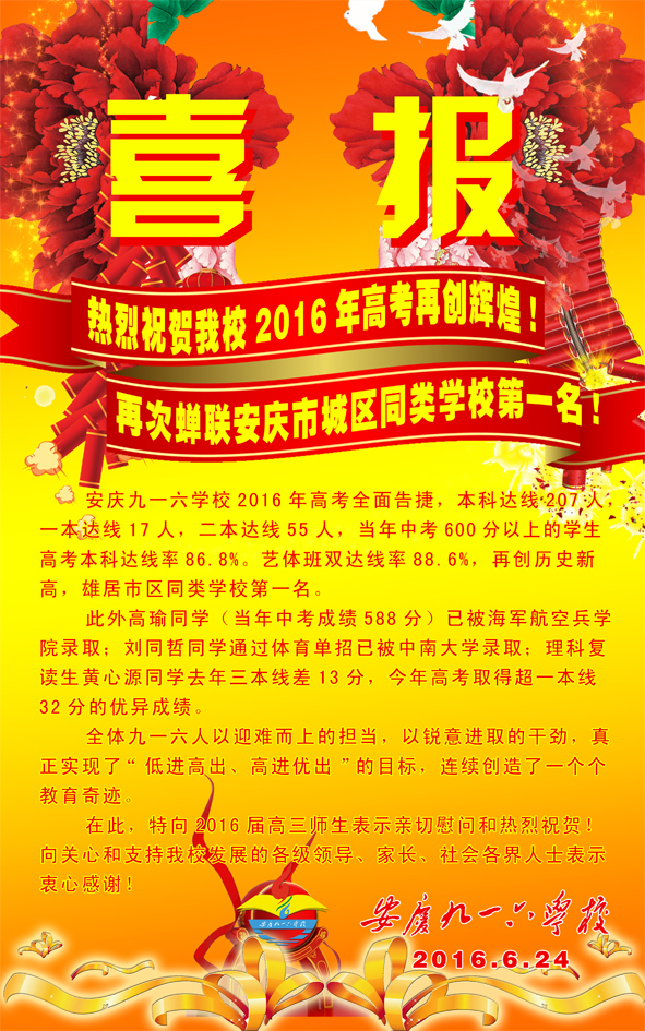 地址:安徽省安庆市安庆九一六学校新校区 联系电话:0556-5467000 5467006 校长邮箱:CSC916@126.com
