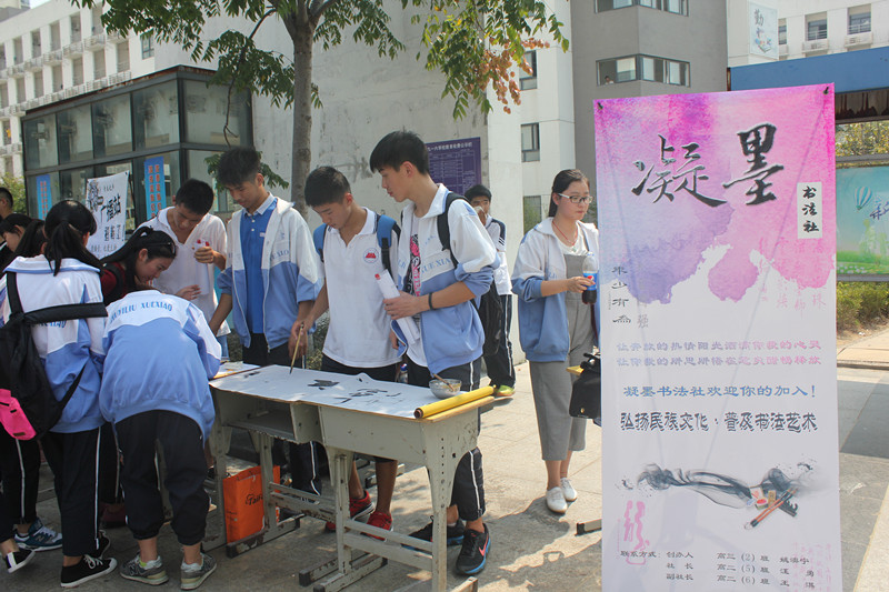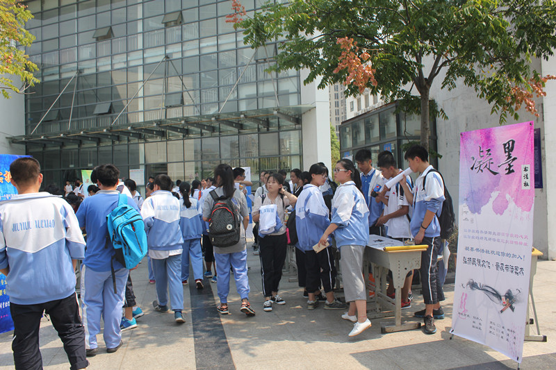 为更好地丰富校园文化,浓厚学术氛围,提升学生综合素质。9月26日,在高中部的统一组织下,高中部学生会、模联社、凝墨书法社、秋实摄影社、青春之声播音社等五个学生社团在食堂前进行了一年一度的社团招新大会。