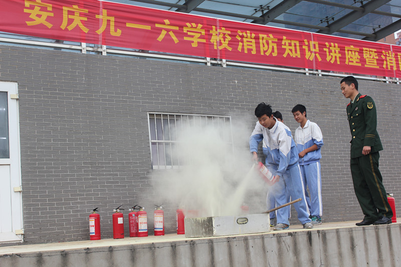 10月17日上午,我校开展了消防知识讲座暨消防器材演示会,全体师生员工参加。会上,宜秀区消防大队的教官们普及了一些基本的校园消防知识,仔细讲解了灭火器的构造及使用方法。在现场演示后,学生及教职工代表在教官的指导下进行了实际操作。随后,教官们还来到学生公寓,为我校生活老师讲述了生活区火灾预防注意事项,演示了消防栓的使用办法。