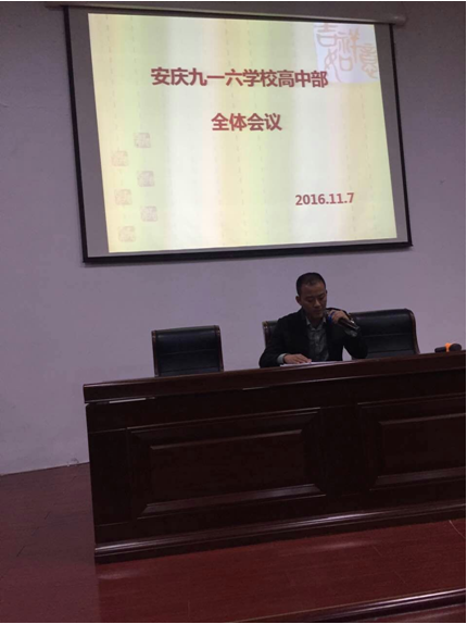 11月7日晚,高中部在二楼阶梯教室召开学部全体教师会议,高中部教学教研主任徐华平主持此次会议。 首先,徐主任通报了十月份考勤情况和九月份月度教学常规考核情况,并布置了青蓝工程师徒结对工作和期中考试考务工作。他指出,希望以常规考核和师徒结对为契机,进一步推进课堂教学改革,努力提高教学效果。 随后,班主任代表乔华兴老师发言,他回顾10年来班主任工作的历程,道出了班主任工作“严”与“爱”的真谛,并和大家分享了一些独特的管理方法,让在座的每位老师受益匪浅。 最后,学部德育主任吴聪对九月份的全员育人工作进行了简要总结,指出目前班主任工作中要特别关注重点时段、重点区域和重点学生的管理和督促,力争使德育工作在细微处、常规中取得较好效果。 通讯员:徐华平 附高中部师徒结对名单: