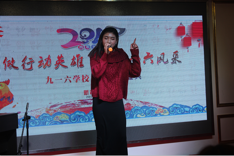 随后,各部门员工带来了丰富多彩的表演,唱歌、诗朗诵、脱口秀等节目精彩纷呈,赢得了满堂喝彩,节目中间还穿插了激动人心的抽奖环节,四等奖、三等奖、二等奖、一等奖、特等奖的抽取,不断掀起年会的高潮。学校领导与教职员工的亲情互动、激动人心的抽奖活动,让歌声、掌声、欢呼声一直在会场上荡漾。整场联欢会高潮迭起,体现了九一六大家庭的团结与和谐。