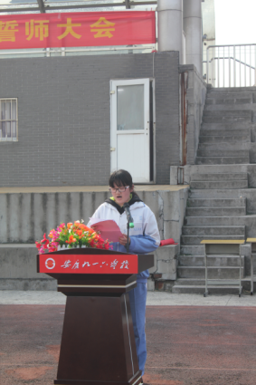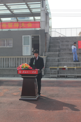大会在庄严的国歌声中拉开序幕。高中部副主任徐华平主持会议。年级主任张义华老师首先总结高三前一阶段情况并做动员讲话。他肯定了同学们在高中两年多的时间内作出的努力以及取得的优异成绩,分别向老师、学生和家长分别提出希望。