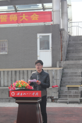 优秀学生代表高三(8)班胡颜同学谈了自己在百日里拼搏高考的雄心壮志;蔡世明老师、家长代表以师长的身份勉励同学们刻苦勤奋,表达了将和学生们一起努力,为了美好的明天一起奋斗。在学生代表、教师代表的带领下,全体高三师生庄严宣誓。铮铮誓言,似春雷,似战鼓,铿锵有力,振奋人心,把大会推向高潮。