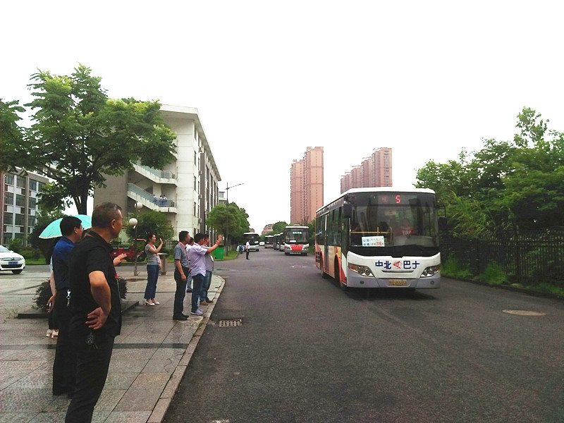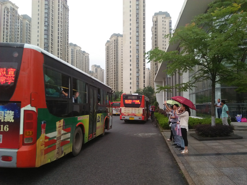 2017年6月14日中考第一天,我校初三年级700多名学生在领队老师的带领下准时到达中考各个考点。