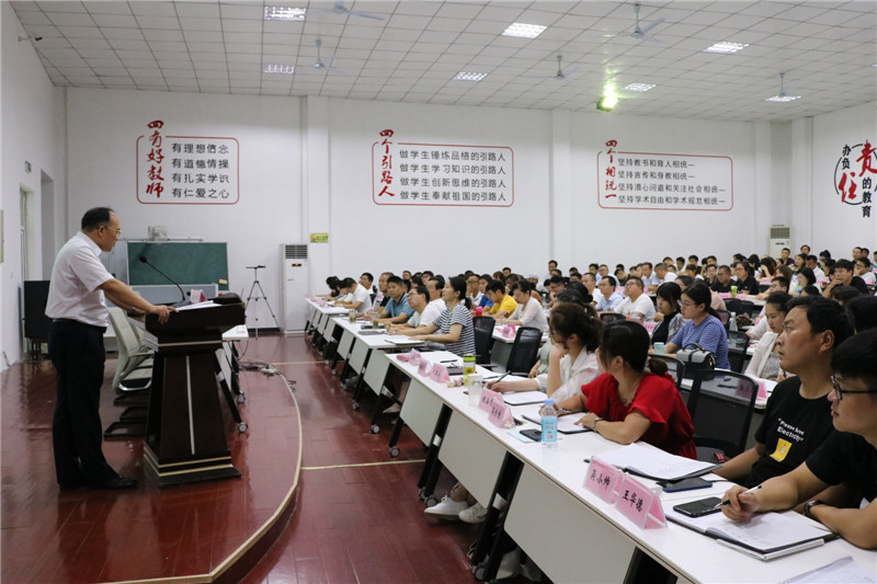 新学年即将开始,为保证新学年各项工作顺利进行,进一步统一思想,凝聚力量,推动学校工作再上新台阶,8月28日下午15:00,我校召开了2019—2020 学年开学工作会议,学校校长何仲华等校级领导及全体教职工参加本次会议。