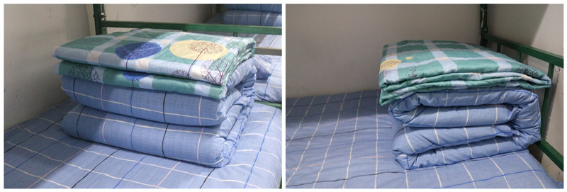 学习了内务整理后,寝室里的被褥从大面包变成了豆腐块,洗漱用品从杂乱变成整齐。在指导员认真详细地指导下,整洁干净的床铺,叠放整齐的豆腐块被褥,还有摆放规整的生活用品得以呈现。