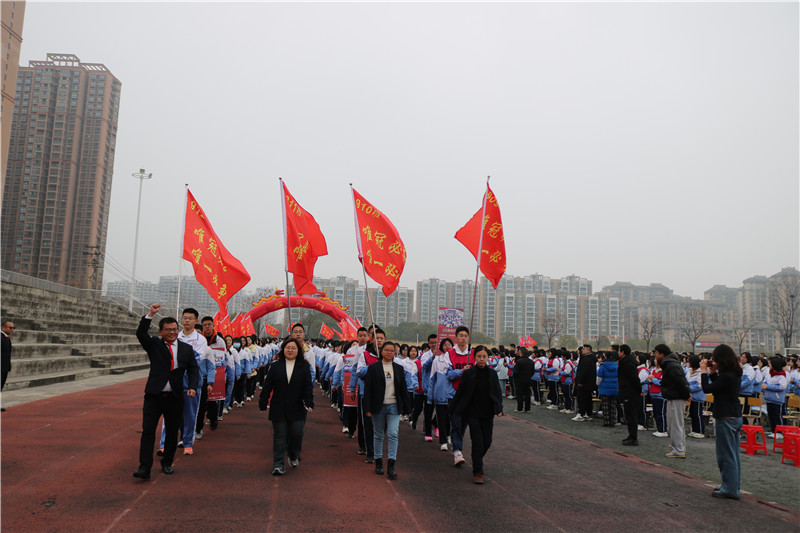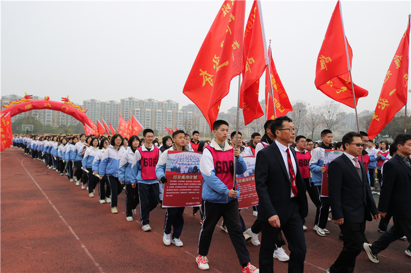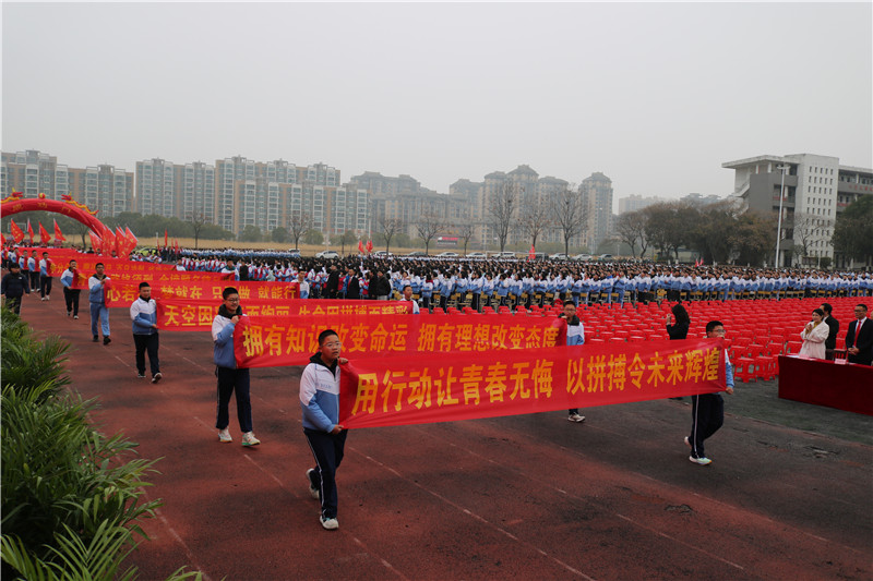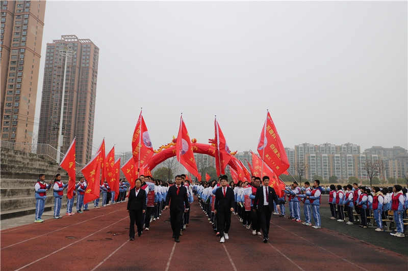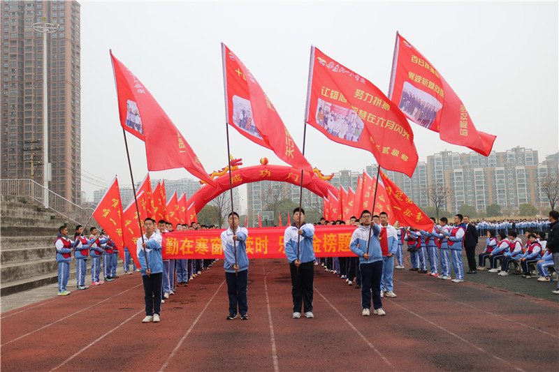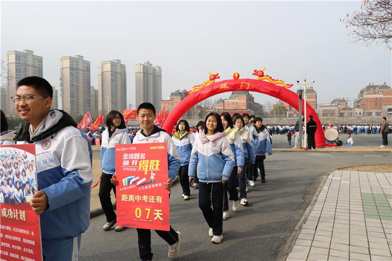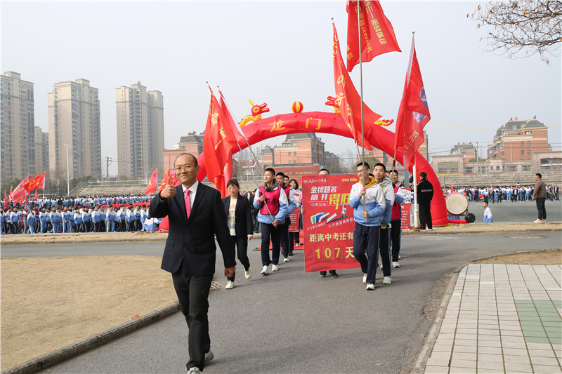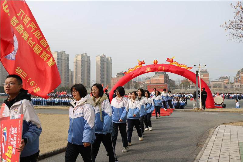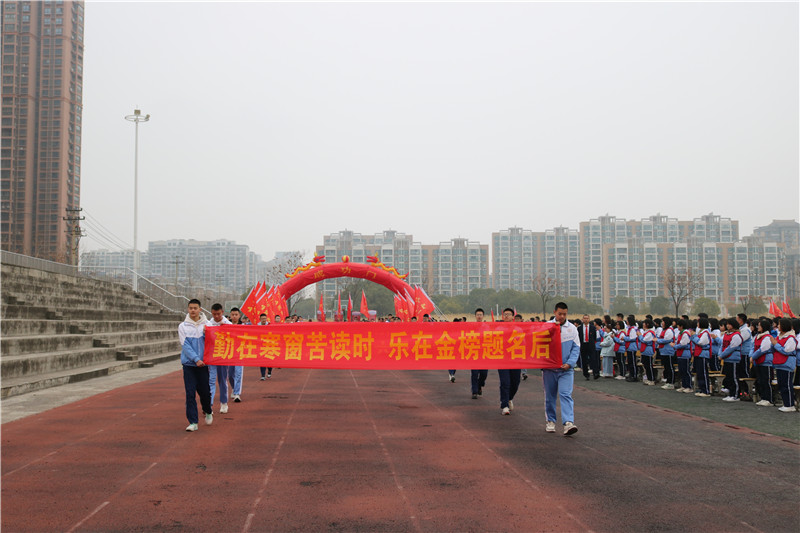 大会在一片长久的掌声与热烈的祝福声中圆满结束,毕业班的学子们依次踌躇满志、步履矫健地跃过龙门。十年寒窗夜继日,只盼鱼跃成功门,一朝考场竞秀日,正是蟾宫折桂时。真可谓莘莘学子,厉兵秣马,立志凌绝顶;万千豪情,拼搏百日,破浪展雄风。