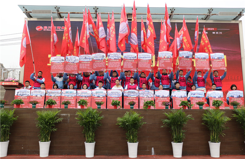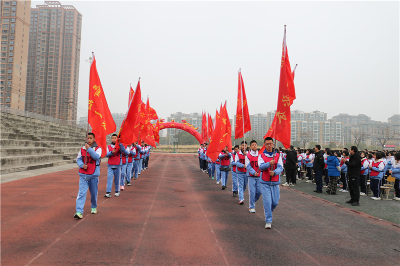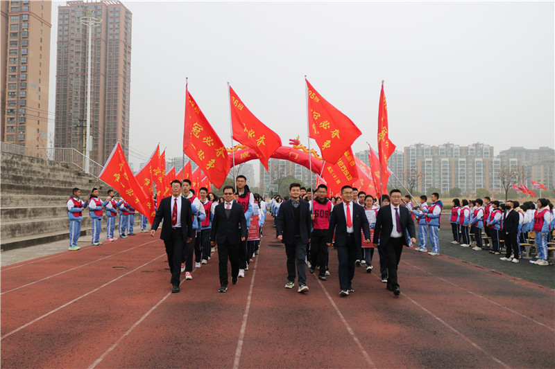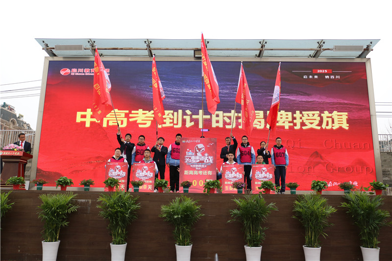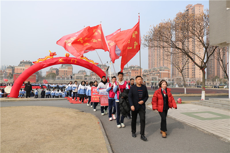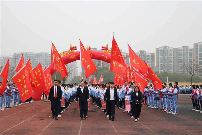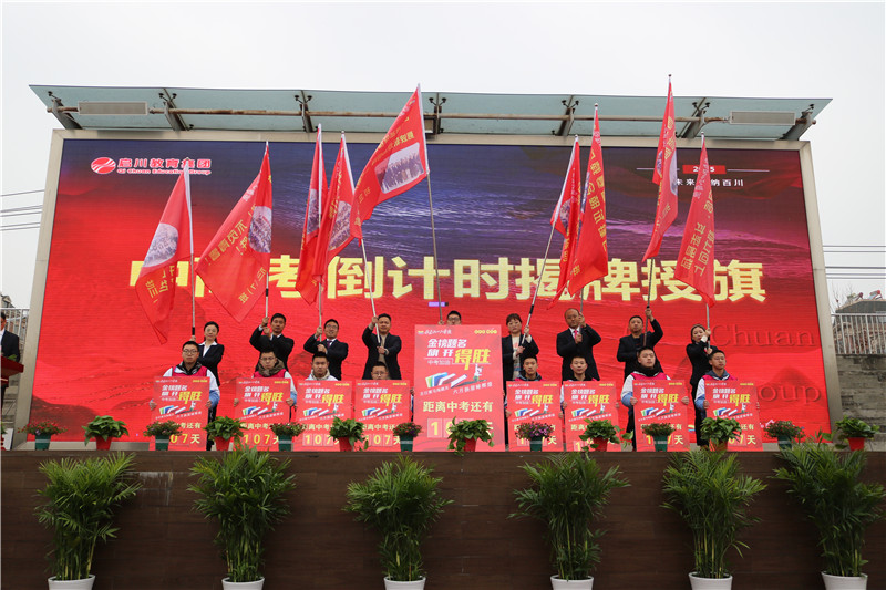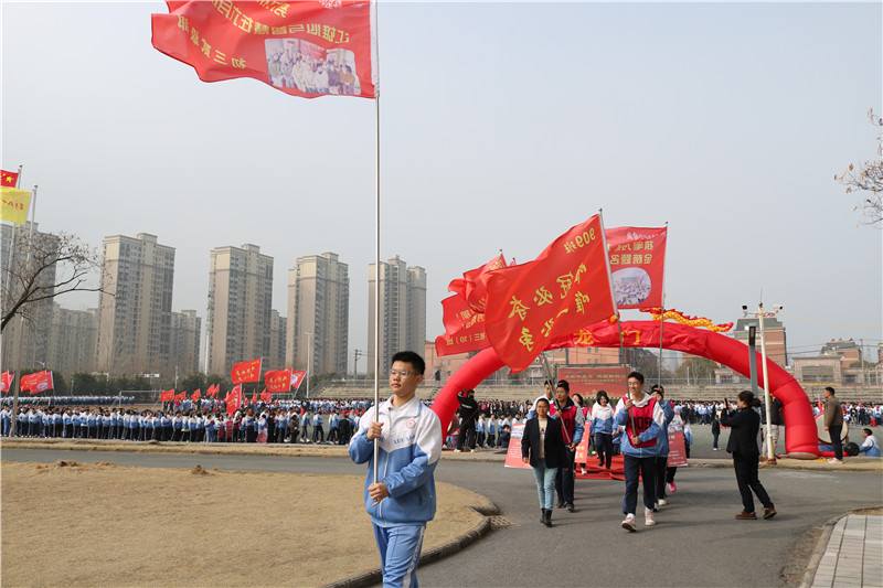 接下战旗就意味着身负使命,肩扛重任。迎风飘扬的战旗上,展示着各班授课老师的合影和催人奋进的标语。凸显了全体毕业班师生敢于亮剑的精神、勇于挑战的豪情和为梦想付出的担当!