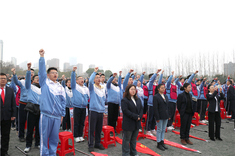 全体毕业班教师宣誓。老师们匠心育人、不改初心,用汗水浇灌希望,用智慧哺育理想。他们的宣誓映射出众志成城、奋力耕耘、竭尽全力,“甘将心血化时雨,润出桃花一片红”的雄心与壮志!