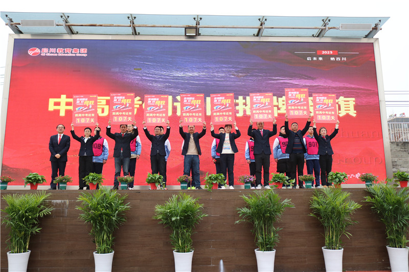 焦校长、程校长为中高考倒计时揭牌。倒计时揭牌仪式点燃了全体师生迎战中高考的激情,也标志着毕业班的全体师生正式进入中高考百日冲刺的关键攻坚阶段。