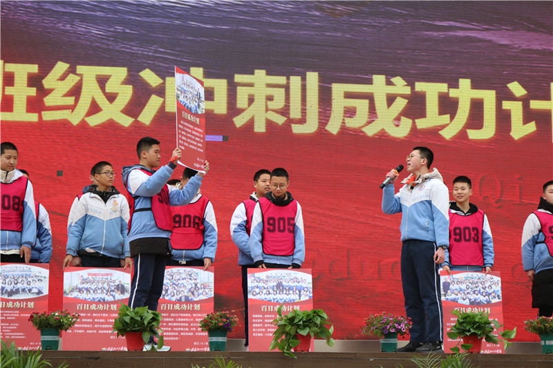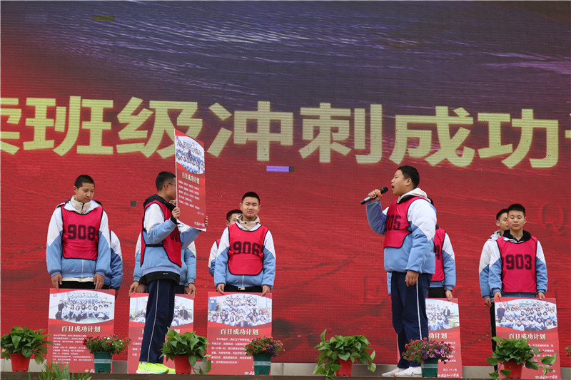 学生代表上台发言,他们回顾了三年的学习生活,感谢老师的辛勤付出和家长的默默支持,并号召全体初高三学子在最后的100天里,以“时不我待,只争朝夕”的精神,奋力拼搏,不负青春,不负梦想。铮铮誓言,铿锵有力,尽己所能,方能无悔!