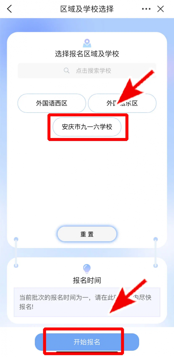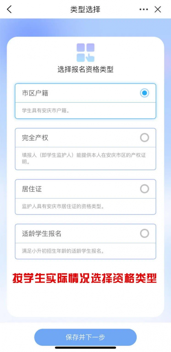 城区小升初线上报名操作流程看过来! 一、下载皖事通,注册实名认证。(已有皖事通APP的用户请忽略该项) 1、苹果用户在 AppStore搜索“皖事通”下载;安卓用户在各应用市场搜索“皖事通”下载。 2、进入皖事通—“我的”,进行注册和实名认证。 二、报名时间 线上报名7月14日—7月18日。 7月18日17:00线下指导截止。 三、入校资格类型(单选)说明 第一类市区户籍:学生具有安庆市户籍。 第二类完全产权:填报人(即学生监护人)能提供本人在安庆市区的产权证明。 第三类居住证:监护人具有安庆市居住证的资格类型(能提供安庆市区工作证明或租房协议亦可)。 第四类适龄学生报名:学籍在安庆城区或随迁子女,选择此类入口。 注意事项 (1)请上传清晰的佐证材料照片,保证佐证材料的完整性及真实性。 (2)如不确定报名学校或报名信息,可先“保存并下一步”(即未提交状态),咨询学校后,再次进入系统进行填报。 (3)未提交状态的报名信息,请在我的报名中进行查询。同时,进入首页后,系统会自动提示未提交的报名信息,可选择其中一个报名信息进行“修改报名”或“删除报名” 操作。 (4)未提交状态的报名信息,学校审核端无法查看,请尽快填报后完成报名。 以下为演示环境模拟报名 1. 2. 3. 4. 5. 6. 7. 8. 9. 10. 11. 12. 13. 线下指导需携带智能手机、户口本、出生证明、学生小学毕业证、学籍表原件。 选择完全产权的,还需带房产证(或购房合同); 选择居住证的,还需带居住证(工作证明原件或租房协议原件)。 指导咨询电话 0556-5467011 0556-5467096 0556-5467008