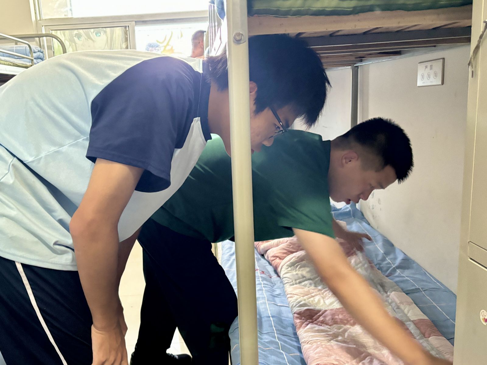训练场外,他们是“大家长”。一天训练结束,班主任的工作并未停止。他们深入到学生中间,关心同学们的生活,提醒大家合理作息,注意身体;他们及时与学生沟通,了解训练情况,反馈学生状态;他们还在带领学生学会独立生活,亲手整理内务,每一步都是自立的印记。
