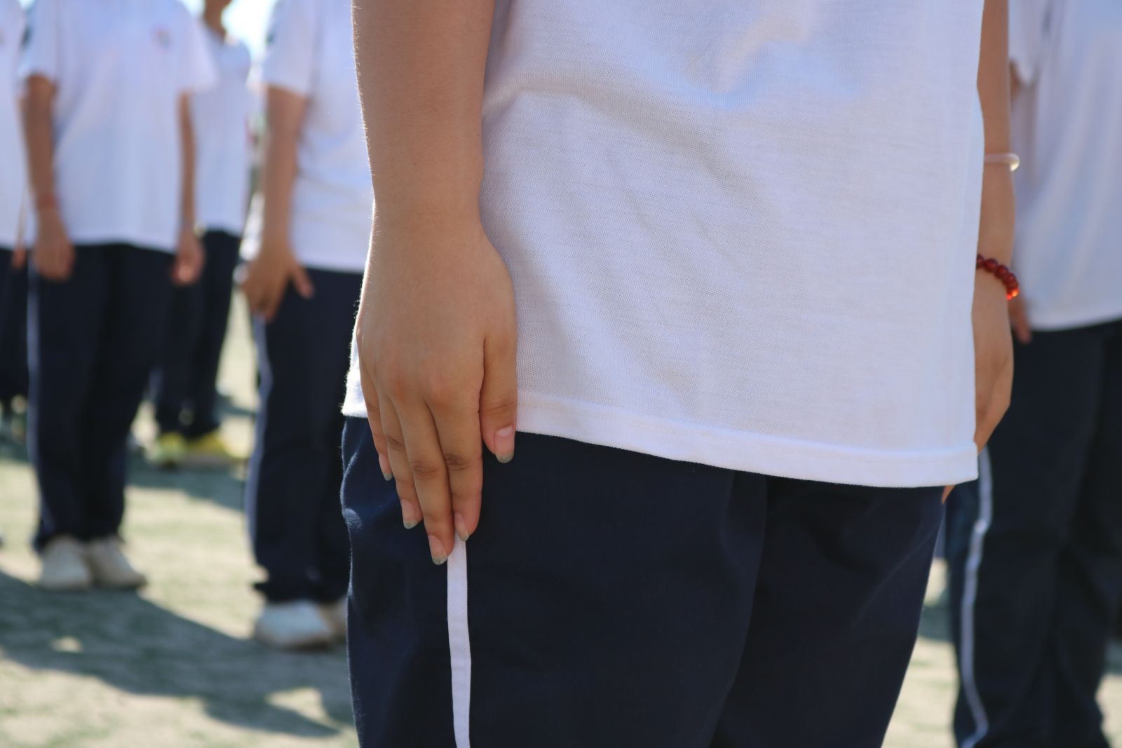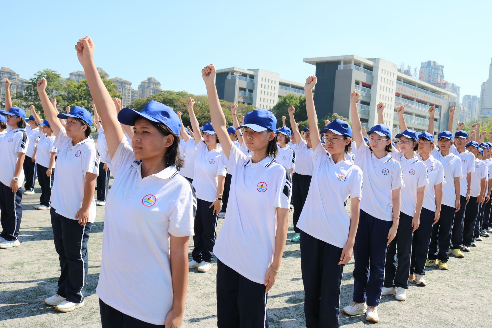 稍息、坐下、看齐。意气风发的少年,在阳光之下一遍一遍地练习,磨炼顽强的斗志,培养吃苦的精神。目光如炬,展青春靓丽姿态;整队训练,显少年英姿。