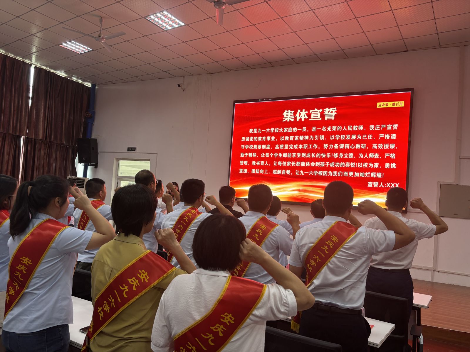 大会在庄严的宣誓中拉开帷幕。全体师生肃立,振臂高呼,展现了九一六人昂扬向上的精神风貌。