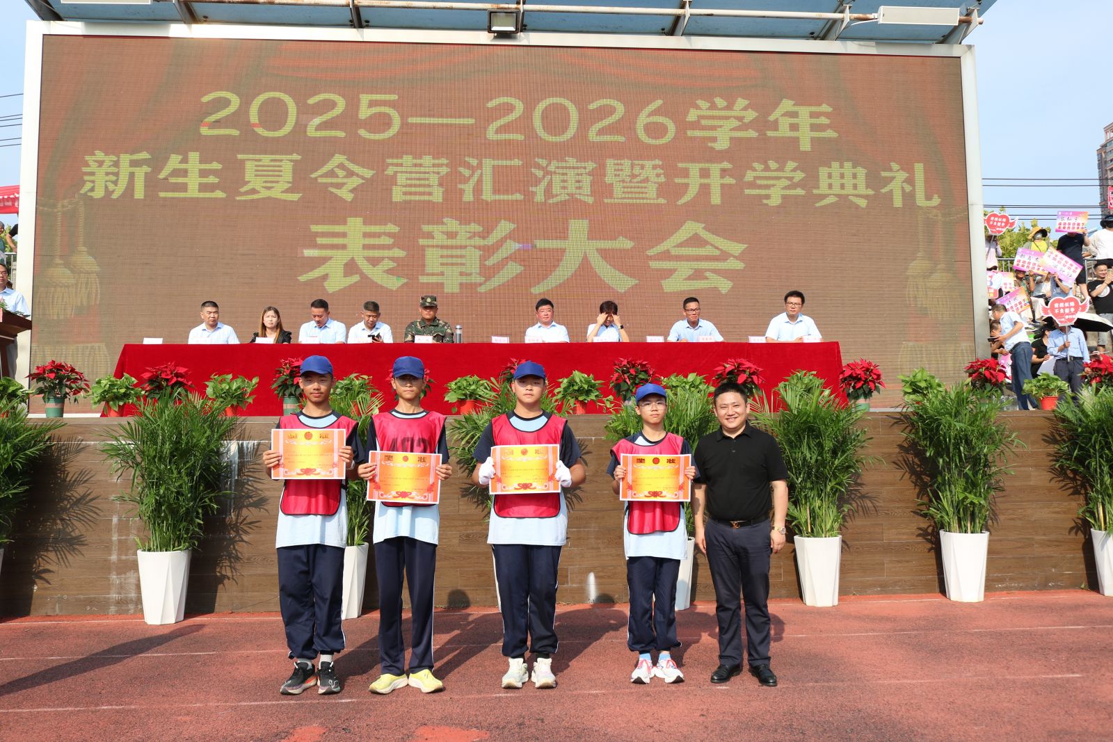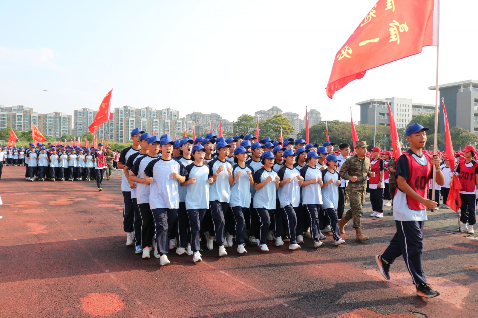 新的征程已经开启,时代的号角催人奋进。此次夏令营汇演暨开学典礼不仅是一次体魄与意志的锤炼,更是一堂融爱国主义、集体主义、感恩教育于一体的生动思政课。相信2025级全体师生必将以此为起点,传承优良作风,恪守报国誓言,以青春之我、奋斗之我,在九一六的广阔平台上书写无愧于时代的精彩篇章,为实现中华民族伟大复兴贡献青春力量!