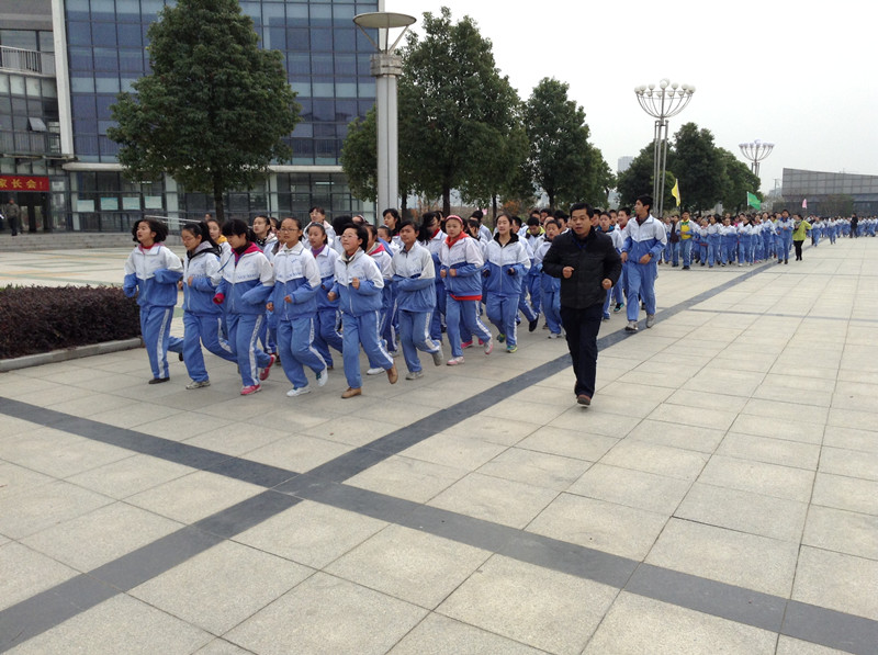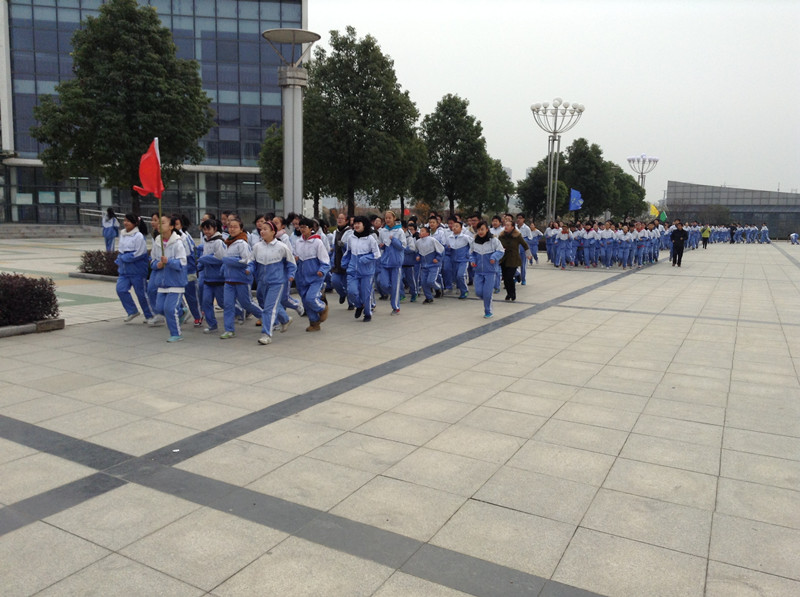 近日,天气日渐寒冷,但操场上却是热情不减,初二年级组跑操活动正在如火如荼的开展。在方良主任和张琨组长的带领下,各班围绕着学校中心广场跑步,此起彼伏的口号声、整齐划一的脚步声在九一六的校园里回响着。
