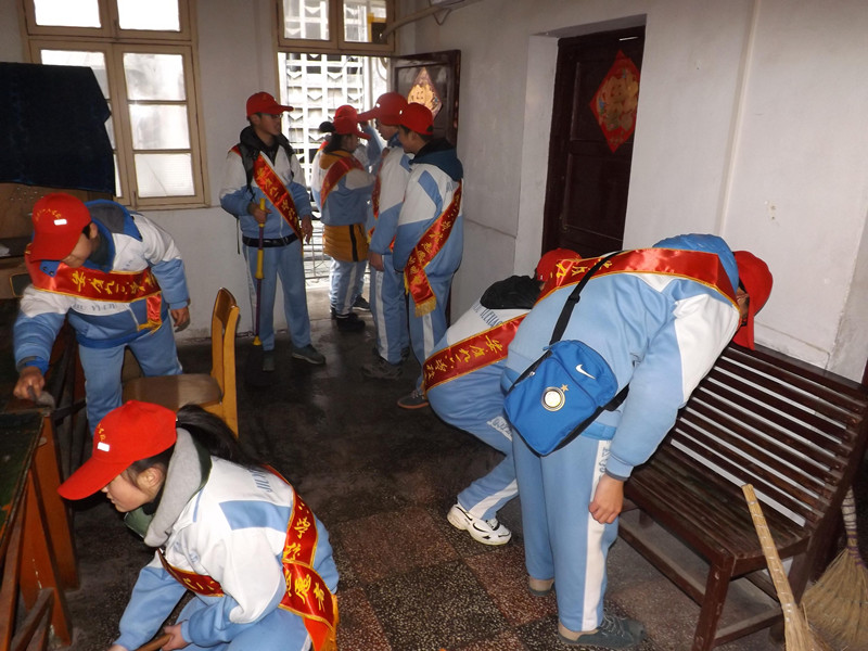 帮老人们打扫卫生,干干净净迎新年