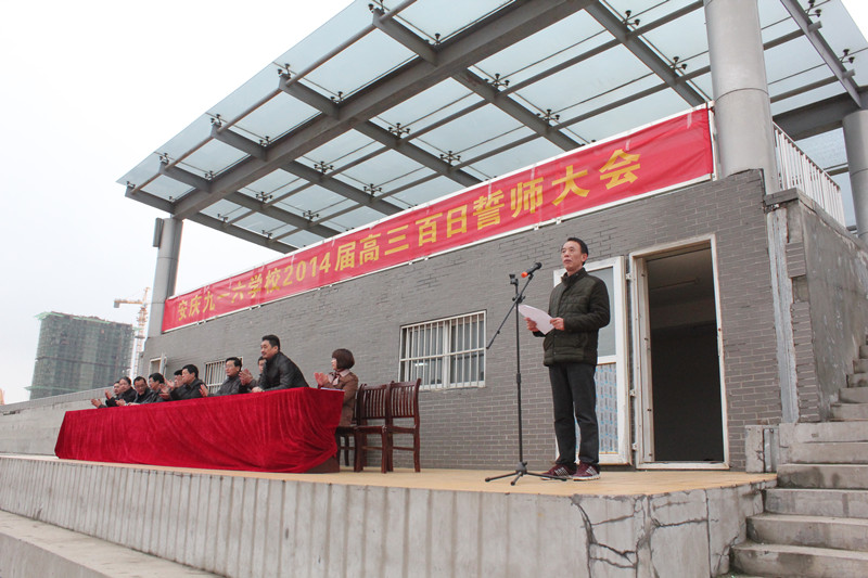 首先,高中部主任黄芳霞作了“点燃激情,成就梦想 ”的主题讲话;随后, 班主任代表季云涛、教师代表徐可可以及高三学生代表姚特凯做了激情发言;校长周诗长也亲临会场,对高三年级的师生们进行了热情洋溢的讲话。最后,高三全体师生进行了“百日誓师”宣誓:“奋战百日,让青春无悔!决胜六月,为母校增辉!……”