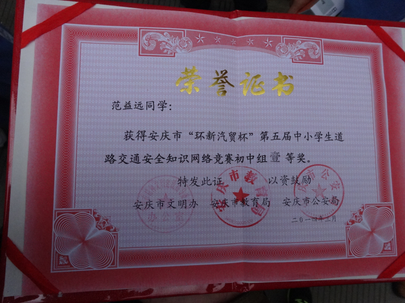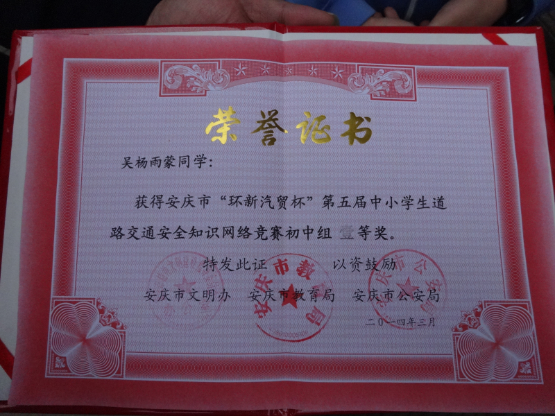 我校在安庆市交通知识竞赛中再获佳绩