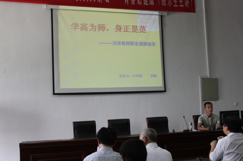 下午,政教处吴聪主任作了《学高为师,身正为范——班主任业务培训》专题讲座;随后,全体教师观看了《热血教师》影片;最后,6个年级组围绕“师德”主题以及《安庆九一六学校行为习惯准则(讨论稿)》《安庆九一六学校学生德育操行实施办法和评分细则(讨论稿)》展开了积极、热烈的讨论。