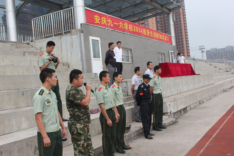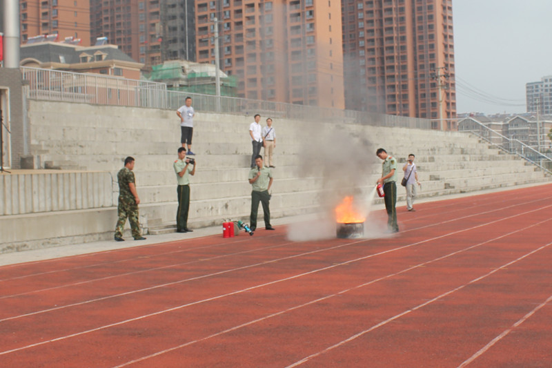 为增强广大师生对消防知识的了解, 9月15日早上,我校邀请宜秀区消防大队在校田径场上给全体师生讲解消防知识,现场示范操作灭火器和消防栓。