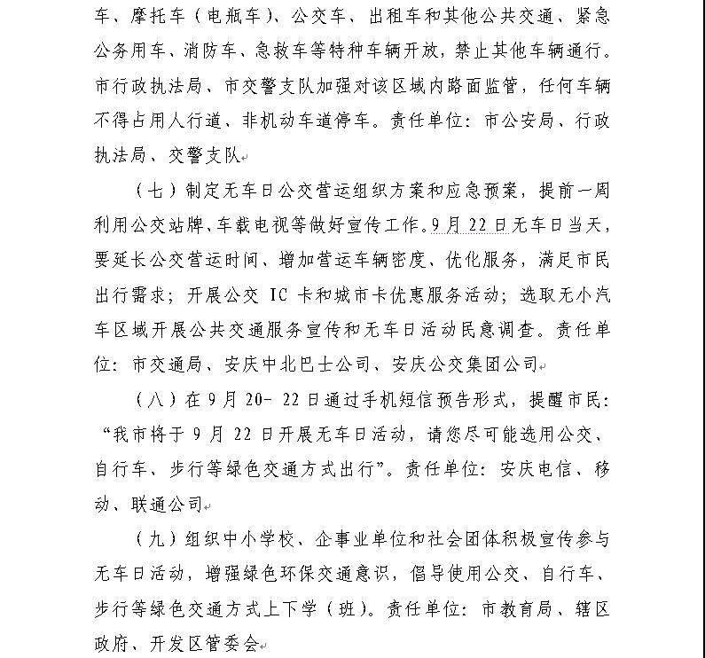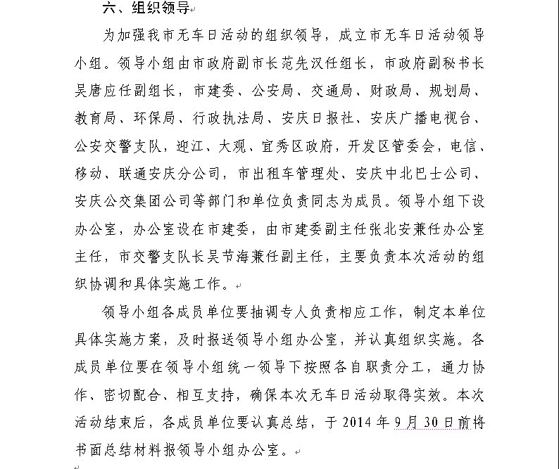 转发安庆市人民政府《关于开展2014年中国城市无车日活动的通知》的文件