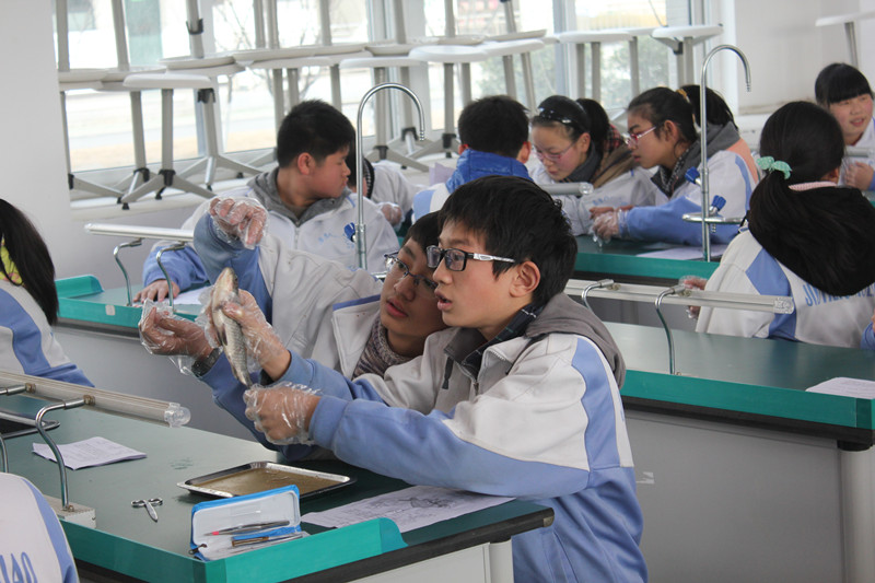 我校生物教研组一直提倡从激发学生兴趣入手,提高生物课堂教学效率,达到有效教学的目的。为此,我校生物教研组于1月19日下午在实验室开展了以“鱼的解剖实验”为主题的兴趣课堂活动。