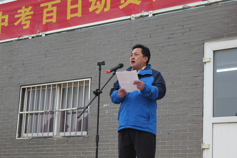 下图:副校长李一雄向全体初三师生作了重要讲话