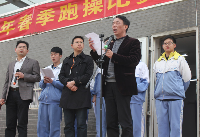3月24日下午,我校在校田径场隆重举行2015年春季跑操比赛。全校68个班级参加了此次比赛,比赛由教务处副主任李艮林主持。校长周诗长等校领导观看了比赛并颁发奖状。赛前,副校长李一雄就本次跑操比赛作了精彩的发言。