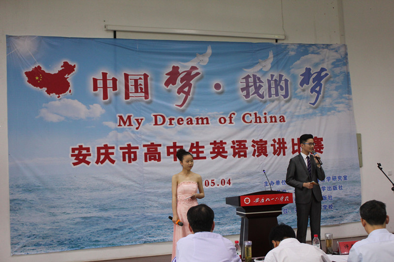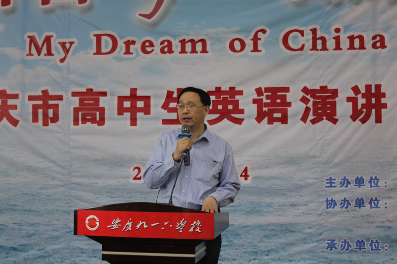 5月4日上午,由安庆市教研室主办,北京师范大学出版社、安徽大学出版社协办的安庆市高中英语演讲比赛“中国梦·我的梦”在我校成功举办。本次比赛共吸引来自安庆市城区及八县(市)49名选手参赛,安庆市教研室主任孙彦、副主任陈俊、校长周诗长出席了开幕式。周校长代表学校致欢迎辞并介绍我校发展情况。比赛中选手们的精彩演讲,充分展现了我市高中学生良好的英语语言运用能力和积极向上的精神风貌。