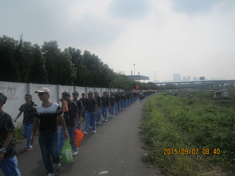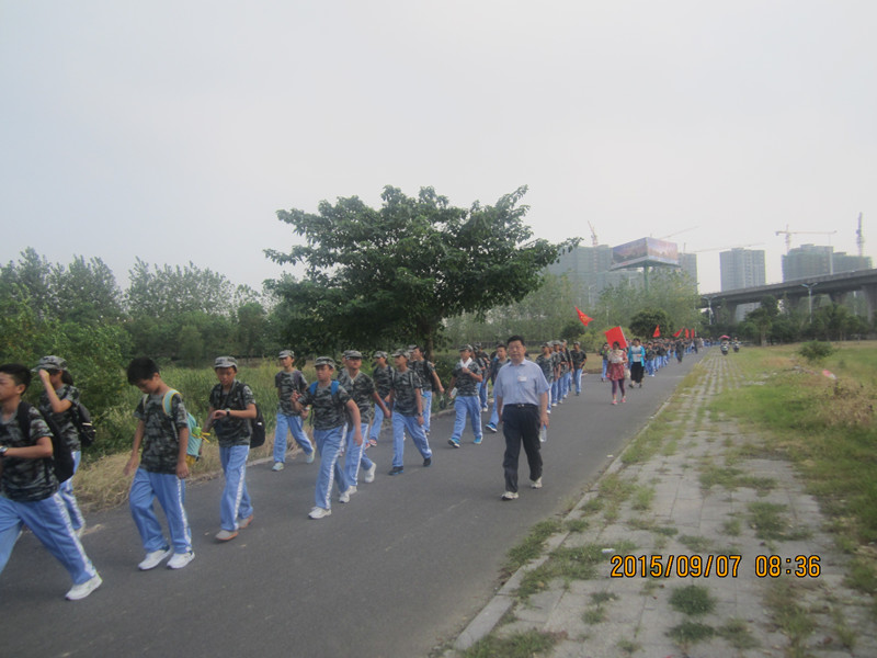 9月7日,我校2015年新生军训拉练活动顺利开展。早上,在校田径场上举行升旗仪式后,周校长向全体新生作了生动的军训拉练动员讲话。随后,我校高一全体师生由校车送到安庆一中集合,参观完一中校园、校史馆,登上一中谯楼后,沿着沿江路走向九一六学校。初一全体师生在校沿高一年级路线反向走向安庆一中。经过近2个小时的长途跋涉,两支队伍在长江滨江公园胜利会师,交换旗帜后继续前行。经过近3个小时,高一师生顺利返校,初一师生到达安庆一中参观完后,由家长接回家。