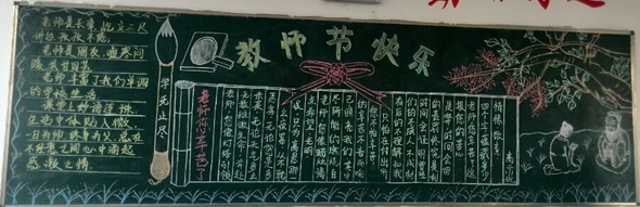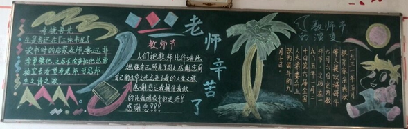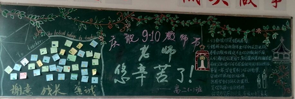 在这阳光和煦,云淡风轻的美好日子里,我们迎来了第31个教师节。为庆祝教师节的到来和加强班级文化建设,我校高二年级于9月12日举行庆祝教师节黑板报评比活动。